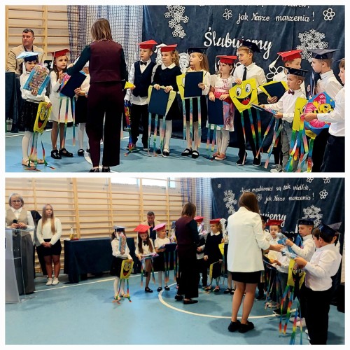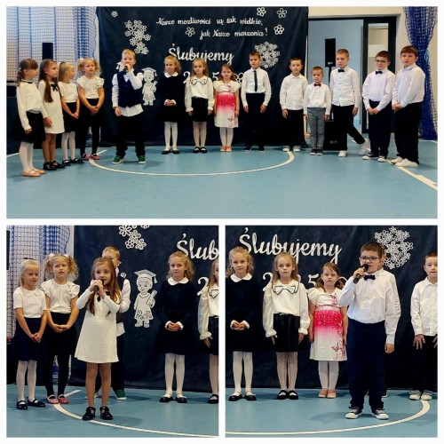 W niezwykle podniosłej atmosferze, przed pocztem flagowym uczniowie ślubowali być dobrymi Polakami, godnie reprezentować swoją szkołę i klasę, swym zachowaniem i nauką sprawiać radość rodzicom i nauczycielom.