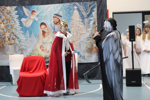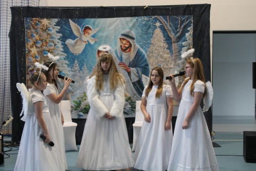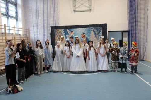 Młodzi artyści z wielkim zaangażowaniem przedstawili historię narodzin Jezusa, a całość dopełniły tradycyjne polskie kolędy, które wprowadziły wszystkich w prawdziwie świąteczny nastrój. Dziękujemy uczniom oraz nauczycielom za serce, trud i talent włożone w przygotowanie tego wyjątkowego wydarzenia.